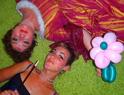 Les clowns en folie maquillent vos enfants pour leur joie.