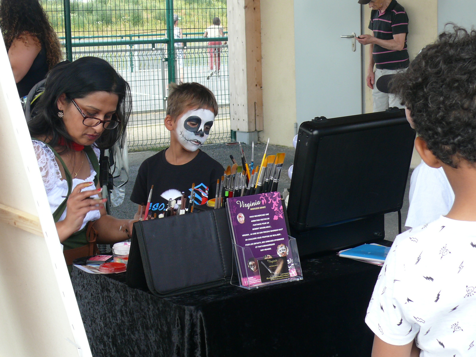 Ayant une palette impressionnante de personnages à sa disposition ,tous plus variés et insolites , tels que : tigre , lapin , pirate , princesse , papillon , superman… , VIRGINIA en quelques coups de pinceau habiles et un trait de génie opérant , accomplie avec aisance ses grimages, allant du plus réaliste au plus extravagant ,sur des visages d’enfants souriants ravis et heureux .